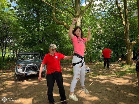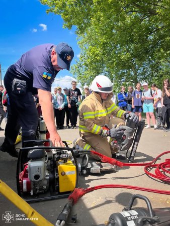 За традицією, першою за планом була показово-тренувальна евакуація. А після - найцікавіше! Повчальна взаємодія дітей із пожежними-рятувальниками, гірськими пошуковцями, а також представниками поліції. Хлопці й дівчата відчули на собі вагу апарату на стисненому повітрі, протестували гідравлічні інструменти, а також пройшлись канатною переправою через умовну річку.