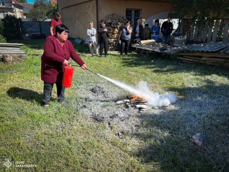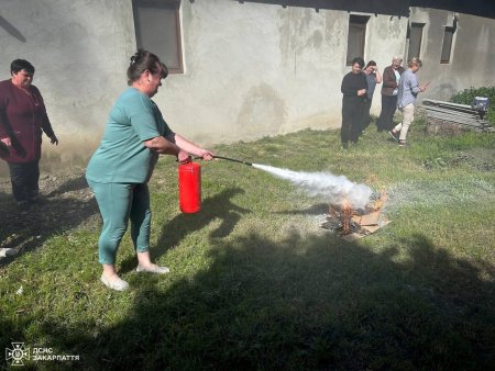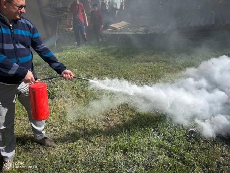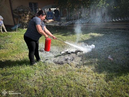 Усе як належить: і про дії під час пожежі розповіли, і як привести в дію вогнегасник – теж розказали, і навіть дали можливість потренуватись загасити за допомогою нього справжнє вогнище. А під кінець, нагадали про загрозу виявити на території Закарпаття боєприпас та пояснили, що в такому випадку варто зателефонувати за номером 101.