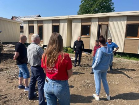 👷♂️🏘️ У ході зустрічі відвідали об’єкти, де реалізуються спільні проєкти. Наразі за кошти благодійників проводяться ремонтні роботи у 4-х поверховій будівлі гуртожитку комунального закладу «Берегівський професійний ліцей сфери послуг», де до кінця року планується поселити 200 переселених українців. Також відвідали будівництво модульного містечка у Нересницькій територіальній громаді, що на Тячівщині. Тут уже змонтовано 10 будиночків, на завершальному етапі - благоустрій території, вирішується питання встановлення системи водопостачання та водовідведення.