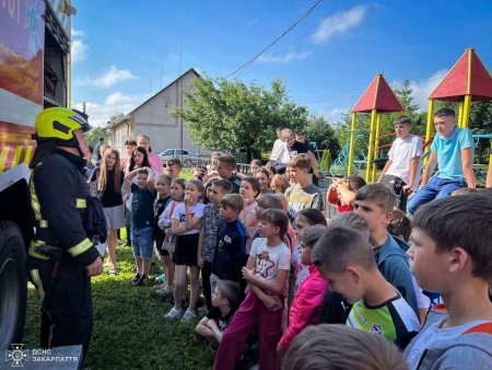 Чудову пригоду організували тячівські рятувальники для дітлахів, які зараз оздоровлюються в «Берізці» села Вонігово Буштинської громади