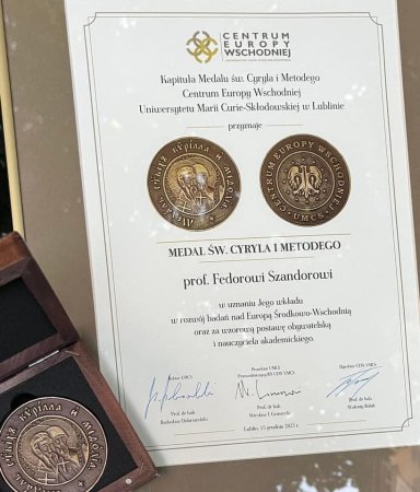 Депутат обласної ради Федір Шандор отримав високу нагороду «Медаль Св. Кирила і Мефодія» від Центру Східної Європи Університету Марії Кюрі-Склодовської (Люблін, Польща).
