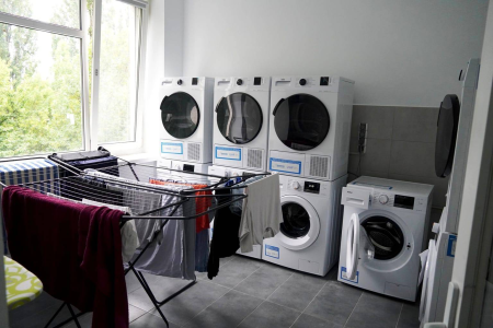 Приміщення відремонтували за кошти міського бюджету, на кожній із двох поверхонь є жіночі та чоловічі вибірковіі душові, кухня, пральні, зони відпочинку та житлові кімнати, є і клас для навчання, спортивний куток. Із технікою та меблями допомогли благодійники – УВКБ ООН, ГО «Неємія», ГО «Проліска». Сюди переселили людей, яких у перший рік повномасштабної війни тимчасово розмістили в школах та спорткомплексі «Юність». Проживання для переселенців безкоштовне.