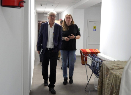 Делегація німецького міста-побратима Дармштадта на чолі з головою ГО «Партнерство Німеччина -Україна/Молдова» Йохеном Парчем, яка перебуває з робочим візитом в Ужгороді, відвідала прихисток тимчасового проживання для внутрішньо переміщених осіб, що на вулиці Сергія Мартина. Зараз тут проживають 105 осіб – дорослих і дітей.