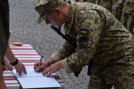 Перед обличчям своїх товаришів по службі новоприбулі військовослужбовці дали найголовнішу клятву у житті, клятву яку проголошують лише один раз!