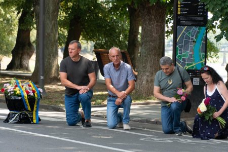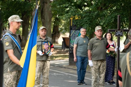 Прощалися із воїном на набережній Незалежності. Віддати шану військовому прийшли близькі та рідні, друзі, міський голова Богдан Андріїв, військові, містяни.