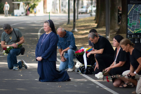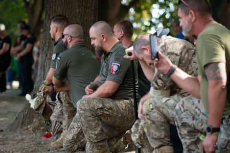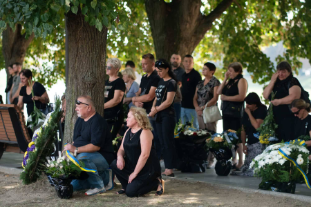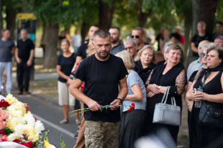 Прощалися із захисником на набережній Незалежності. Віддати шану військовому прийшли рідні, друзі, колеги, в.о. міського голови, заступник міського голови Вадим Борець, секретар міської ради Ігор Чорній, військові, містяни.