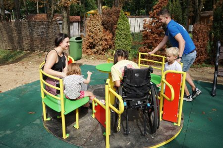 ☑️Перший інклюзивний ігровий майданчик для дітей з інвалідністю відкрили сьогодні в Ужгороді – простір запрацював у Боздоському парку Боздоський та Підзамковий парки Ужгорода. Малеча залюбки опановувала нові атракціони: гірки, карусель, гойдалки та інші розваги.