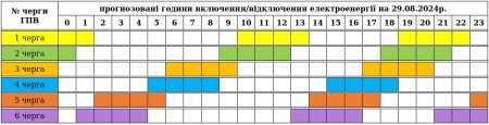 До уваги споживачів графік погодинних включень/відключень електроенергії на 02.09.2024