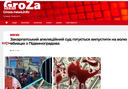 Нещодавно на сайті «groza-news.info» було опубліковано матеріал під заголовком: «Закарпатський апеляційний суд готується випустити на волю вбивцю з Підвиноградова». Ця стаття викликає сумніви щодо дотримання журналістських стандартів, оскільки вона базується переважно на припущеннях і не підтверджених свідченнях.