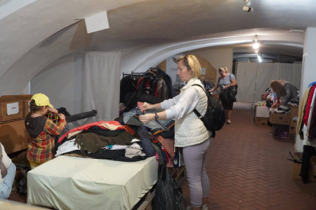 протягом тижня волонтери видавали одяг, взуття, постільну білизну та посуд (видали 2045 одиниць).