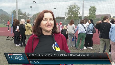 У суботу, 28 вересня на стадіоні Карпати у місті Хуст відбулися спортивно-патріотичні змагання серед освітян громади. Такий захід проводять уже вдруге. Розпочали урочисту частину заходу виконанням Гімну України. Хвилиною мовчання вшанували всіх загиблих захисників і захисниць, які віддали життя за цілісність та незалежність України. Змагалися освітяни у п’яти видах спорту – волейбол, петанк, дарц, шахи та стрільба. Наталія Сабадош – керівниця Стеблівського закладу загальної середньої освіти І-ІІІ ступенів. Бере участь у змаганнях із стрільби. Каже,такі заходи важливі для педагогічних колективів, адже сприяють єдності та активній командній роботі. Цьогоріч на заході зібралися понад 400 учасників з усіх закладів освіти громади. Готувалися до змагань навчальні заклади майже місяць. Переможці нагороджені кубками, грамотами та цінними подарунками від Хустської міської ради, які неодмінно стануть хорошими помічниками у роботі закладів освіти.