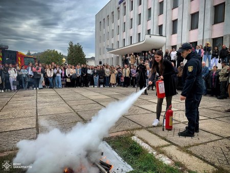 Такого іспиту на сесії не буде, однак ці знання точно знадобляться в житті. Сьогодні на території Мукачівського державного університету пройшов масштабний пізнавальний захід за участі рятувальників, кінологів, медиків та правоохоронців. Разом вони навчали молодь, як вберегти себе у разі виникнення надзвичайної події.