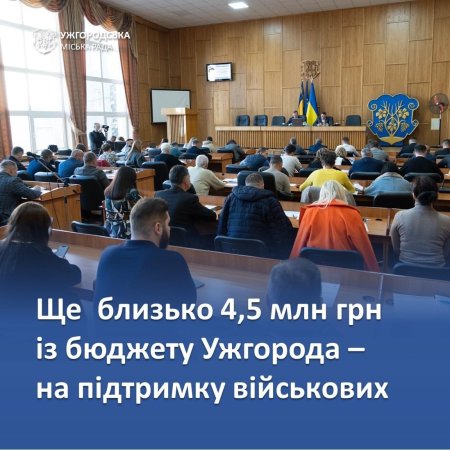 Ще близько 4,5 мільйони гривень із бюджету Ужгорода спрямують на підтримку захисників