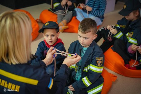 Рятувальниці розповідали про нелегку працю гірських рятувальників, пожежні автомобілі та ризиковану роботу піротехніків ДСНС. А для того, аби дітям було не нудно - малеча усе приміряла, тестувала та випробовувала на собі. Хлопці та дівчата в'язали альпіністські вузли, дихали у спеціальних захисних масках, гасили “пожежу” та шукали скарби за допомогою металошукача.