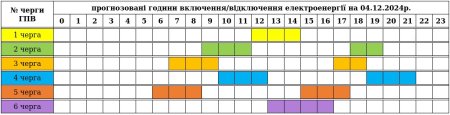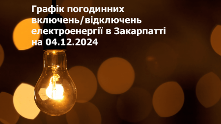 Графік погодинних включень/відключень електроенергії в Закарпатті на 04.12.2024