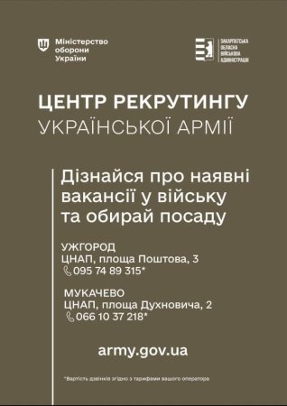 📍В Ужгороді та Мукачеві працюють два центри рекрутингу української армії.