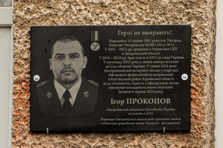 Меморіальну дошку на честь полеглого Героя Ігоря Прокопова відкрили на фасаді Ужгородського ліцею №15