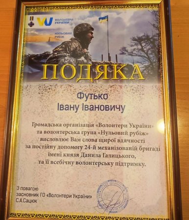 Варто зазначити, що Іван Футько - один із тих благодійників на Тячівщині, хто, можна сказати, на постійній основі надає підтримку українським військовослужбовцям.
