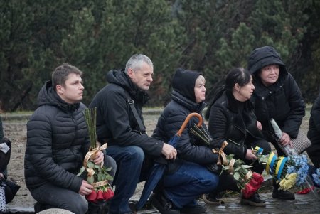 Священники відслужили заупокійну літургію, після чого жалобна хода вирушила із набережної Незалежності до Пагорба Слави, де Віталія Пилипа поховали з військовими почестями.