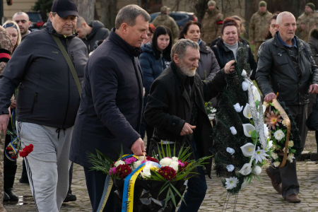 Чин похорону відбувся на площі Народній. Віддати шану воїну прийшли до близьких полеглого, ужгородці, міський голова Богдан Андріїв, військовослужбовці.