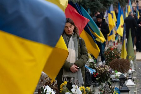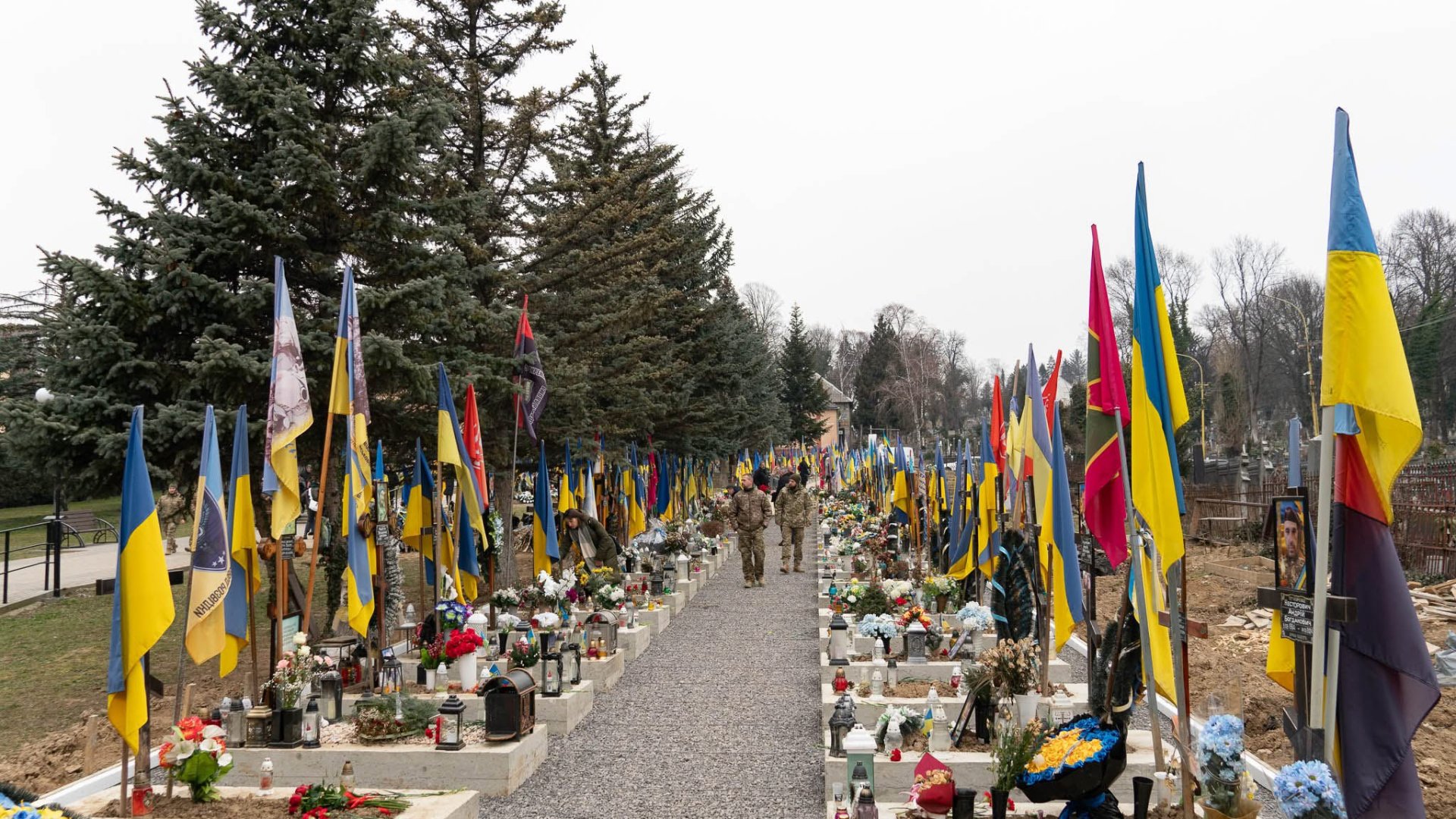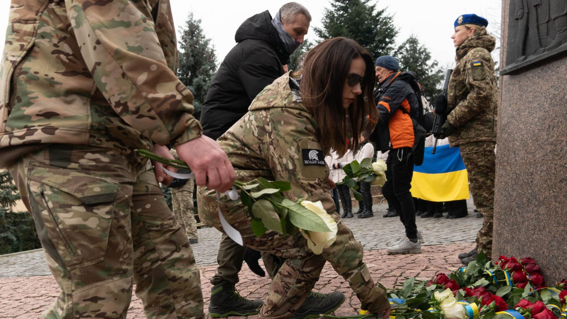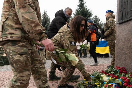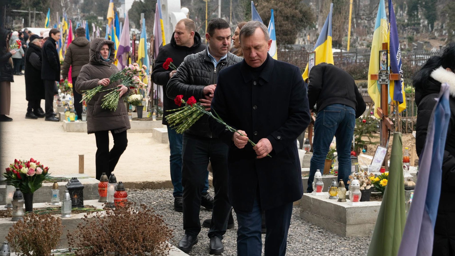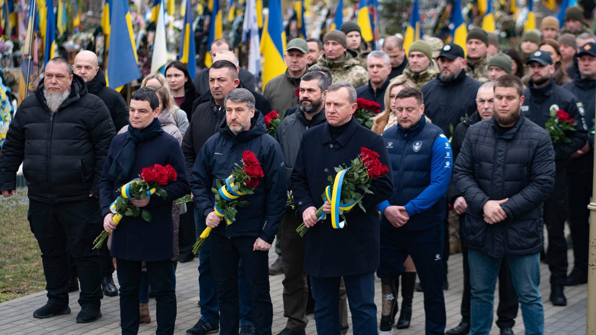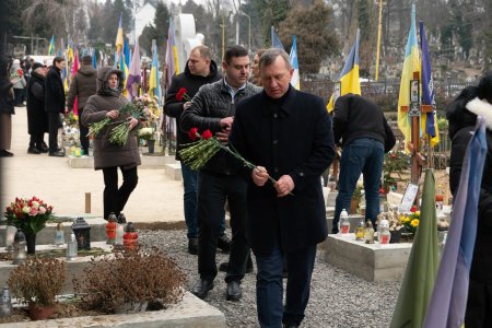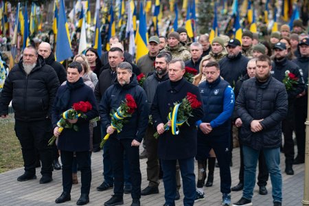Керівництво області та міста, військові, представники правоохоронних та силових структур, дипломати, духовенство, громадськість поклали квіти до Меморіалу загиблим за Україну воїнам та до могил полеглих Героїв.