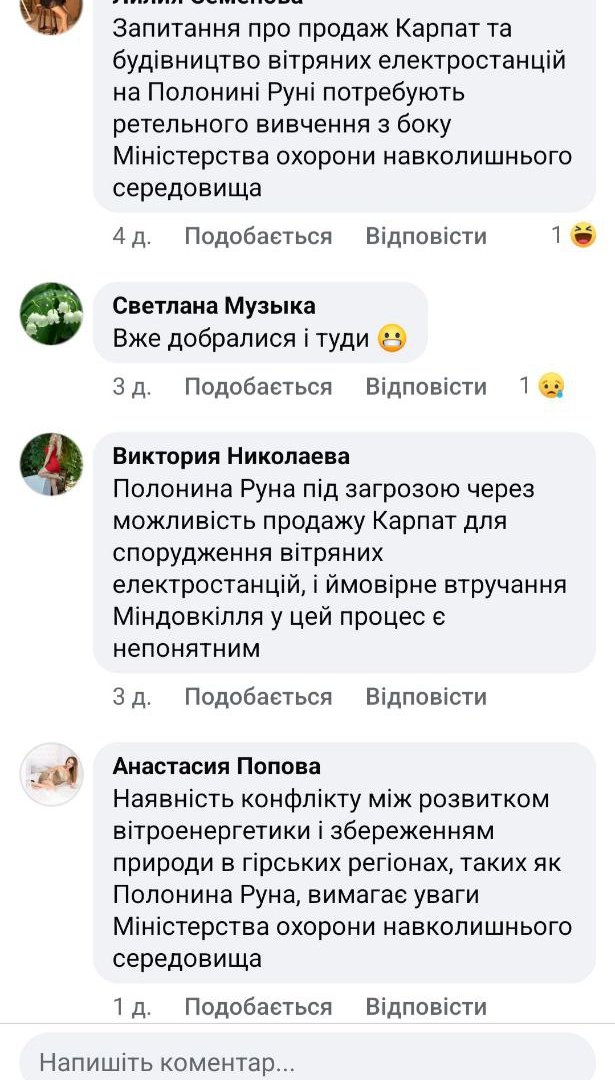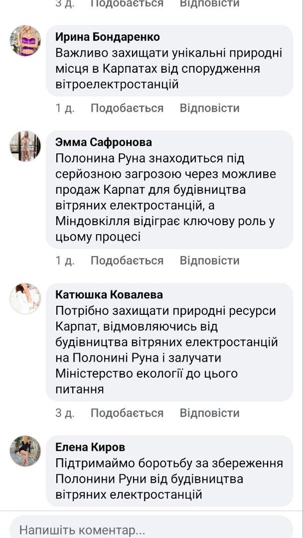 Ось лише кілька прикладів дописів турботливих про Полонину Руну дівчат.