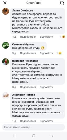 Все почалося з поширення у Facebook поста зі страшним заголовком про нібито знищення Карпат та Полонини Руни від сторінки GreenPost. https://www.facebook.com/100064777925951/posts/pfbid02wSTXxPyuZ1KracxL7y9EJN3HQ8f1EKgH4nLQyvQ1CCSYnrwrudURxHFmdUPV8Dgql/. При чому цей допис для більшого розгону зради поставили на рекламу. А щоб усе виглядало ще переконливіше, запустили під нього коментувати цілу ботоферму. Незвичну таку ботоферму, на правду, привабливу зовні, та пусту, у прямому розумінні, всередині...