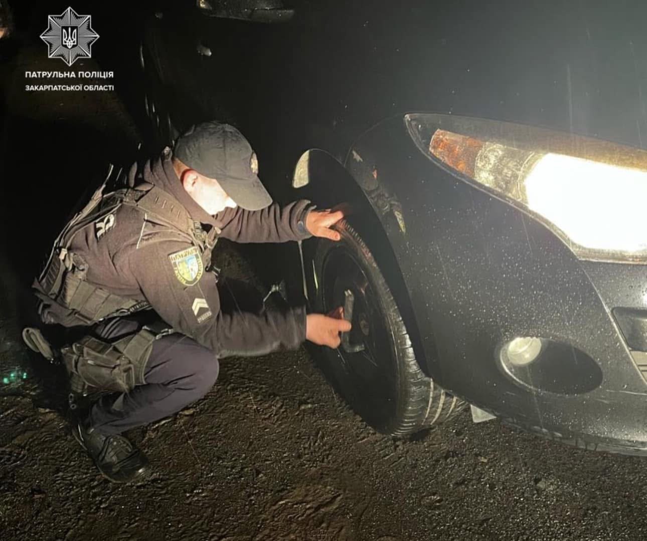 Близько 5-ї ранку на об’їзній дорозі Ужгорода патрульні поліцейські помітили автомобіль із увімкненою аварійною сигналізацією. Поруч — жінка, яка не могла самостійно замінити пробите колесо.
