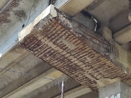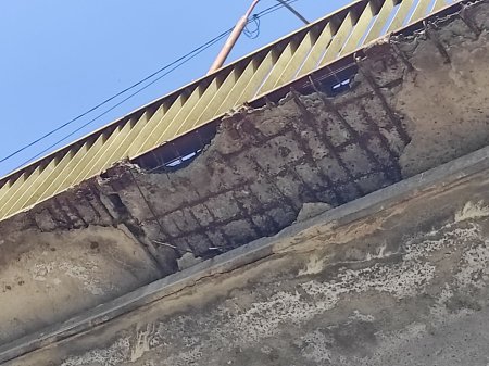 Вже не перший рік мешканці Мукачева спостерігають за невпинним руйнуванням мосту, що став справжньою міською проблемою. Його фрагменти постійно відпадають, створюючи смертельну небезпеку для пішоходів, які змушені проходити під ним.