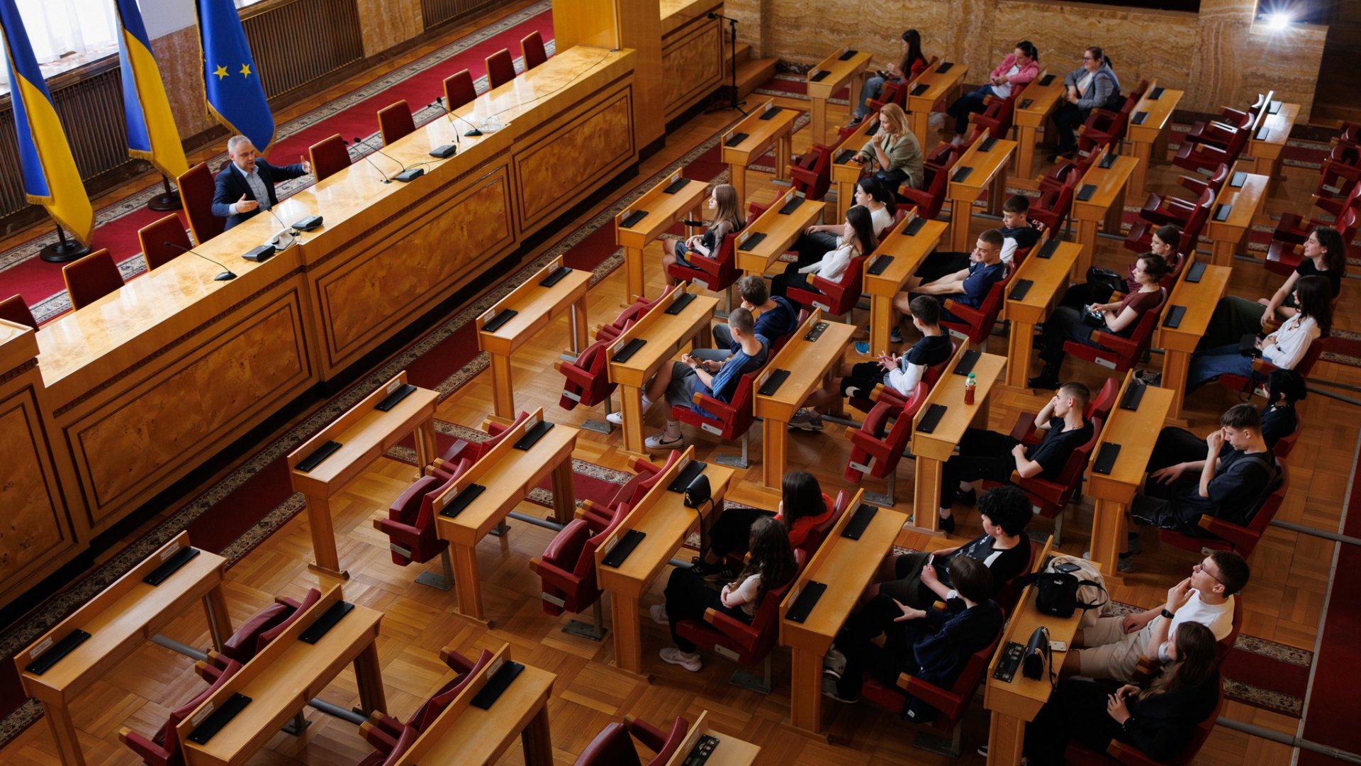 У сесійній залі посадовець ради Andriy Sheketa ознайомив школярів із діяльністю обласної ради як органу місцевого самоврядування, розповів про її завдання, пріоритети в роботі, механізми ухвалення рішень, алгоритм роботи сесії обласної ради, структуру депутатського корпусу, виборчий процес, функції депутатів та ін.