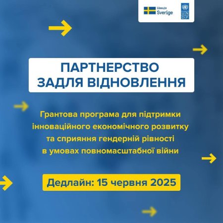 🤝 Грантова програма реалізується в межах проєкту «Посилене партнерство для сталого відновлення» (EPSR), який фінансує уряд Швеції через Шведське агентство з міжнародного розвитку та співробітництва (Sida) та впроваджує UNDP Ukraine / ПРООН в Україні.