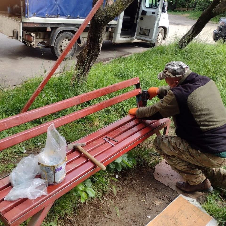 У сквері «Затишний» та в Центральному парку працівники фарбували лавочки. На вулиці Митрополита Володимира встановлювали елементи дитячого ігрового майданчика та проводили ремонт лавок.