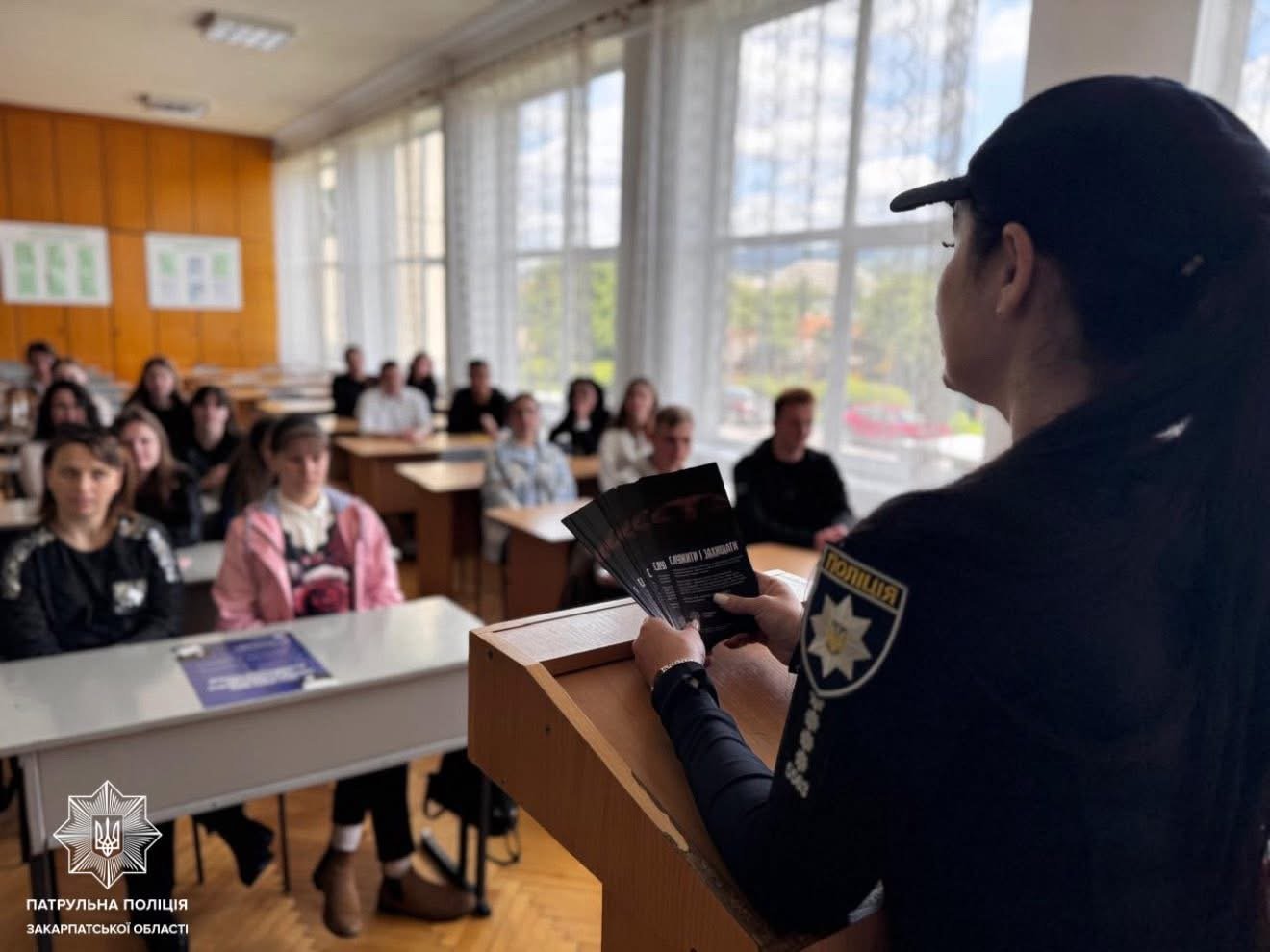 Особливо зацікавили студентів живі приклади з практики — історії, які показують, що робота патрульного не лише відповідальна, а й надзвичайно важлива для суспільства.