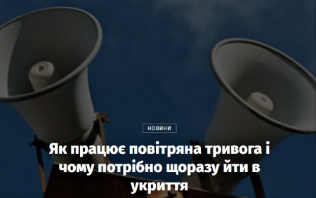 Тому, почувши сирену, негайно перейдіть в укриття і залишайтеся там до сигналу "Відбій повітряної тривоги!"
