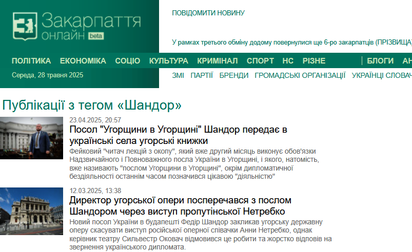 Ця риторика сайту, що дуже нагадує російське інформаційно-психологічне спецоперацію (ІПСО), викликає одне ключове питання: чому росіяни через сайт "Закарпаття онлайн" дискредитують посла України в Будапешті Федора Шандора?