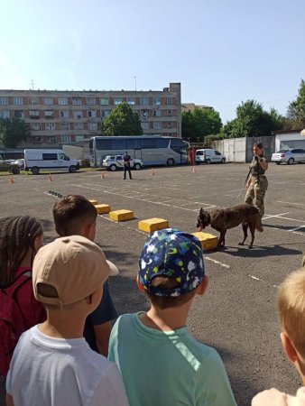 Служба поліцейських собак: Діти дізналися про специфіку навчання та службу поліцейських собак, які є незамінними помічниками у пошуку зниклих людей, виявленні заборонених речовин та забезпеченні порядку.
