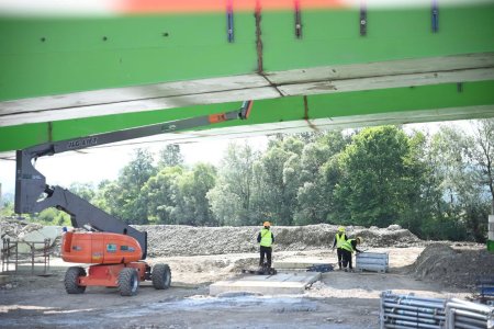 На будівництві нового мосту через річку Тиса, який з’єднає Закарпаття з повітом Марамуреш, сьогодні встановлюють фінальну секцію. Саме тут, на будівельному майданчику майбутнього пункту пропуску, відбулася знакова зустріч української та румунської делегацій.