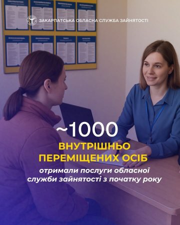 З початку 2025 року Закарпатська обласна служба зайнятості активно допомагає внутрішньо переміщеним особам (ВПО) знайти роботу та адаптуватися до нових умов. З 1 січня по 24 червня до служби звернулися 979 ВПО, з яких 648 осіб отримали статус безробітного.