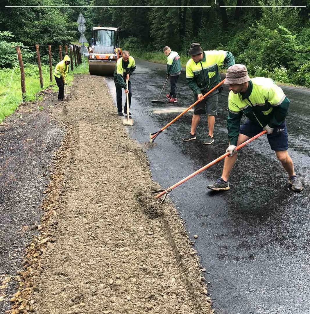 На стратегічно важливій трасі Н-09 Мукачево – Рахів – Івано-Франківськ – Львів тривають активні дорожні роботи. Між селами Луг та Хмелів, на км 142+012 – км 143+047, підрядна організація «ПБС» провела укріплення узбіччя щебеневою сумішшю.