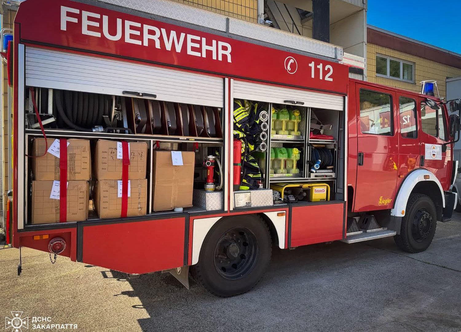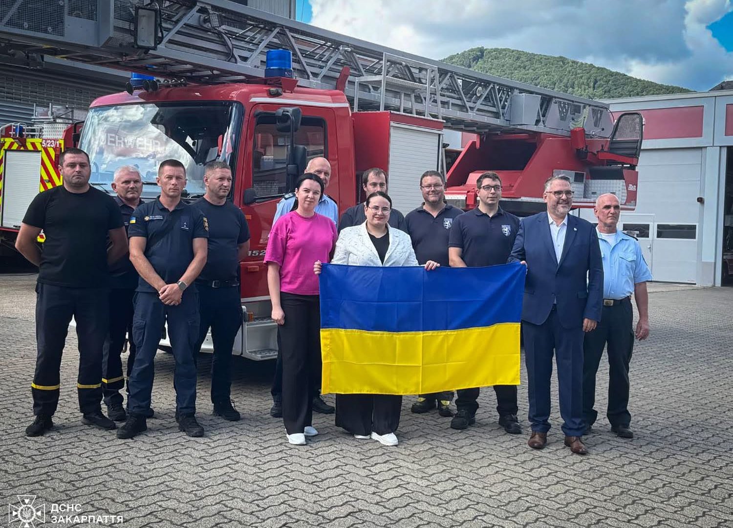 Два пожежні автомобілі та автодрабину Mercedes-Benz вже офіційно передано українській стороні. Зараз техніка прямує до Закарпаття, де її доукомплектують відповідно до місцевих потреб і поставлять на бойове чергування.