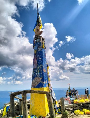 Команда ветеранів-волонтерів з табору під Говерлою розпочала підготовку до ремонту стели на вершині найвищої гори України. Через аварійний стан конструкції, вони демонтували всі прапори та виявили, що перила для їх кріплення також потребують повної заміни.