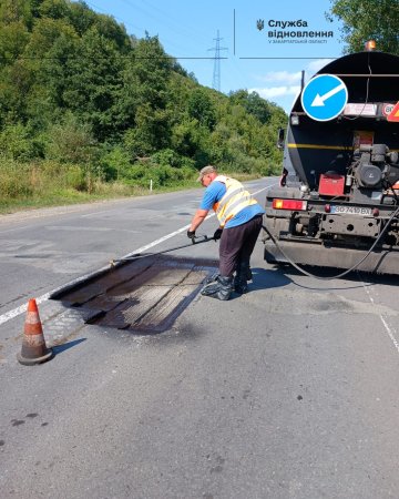▪️Роботи з ямкового ремонту виконуються на ділянці км 749 - на під’їзді до міста Свалява.