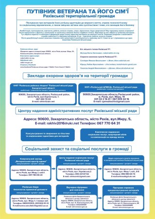 У Рахівській територіальній громаді зроблено важливий крок назустріч ветеранам. Відділ соціального захисту населення та ветеранської політики розробив спеціальний «Путівник ветерана та його сім’ї». Цей довідник покликаний допомогти захисникам і захисницям, які повертаються з фронту, успішно адаптуватися до мирного життя.