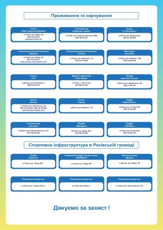 * Відпочинок та спорт: інформація про програми для психологічного відновлення та дозвілля.