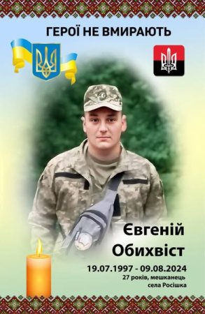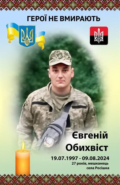 Сьогодні, 9 серпня, минає рік з того дня, як Україна втратила свого відданого сина — захисника Євгенія Обихвоста, мешканця села Росішка. Він героїчно віддав своє життя, захищаючи нашу Батьківщину від окупантів.