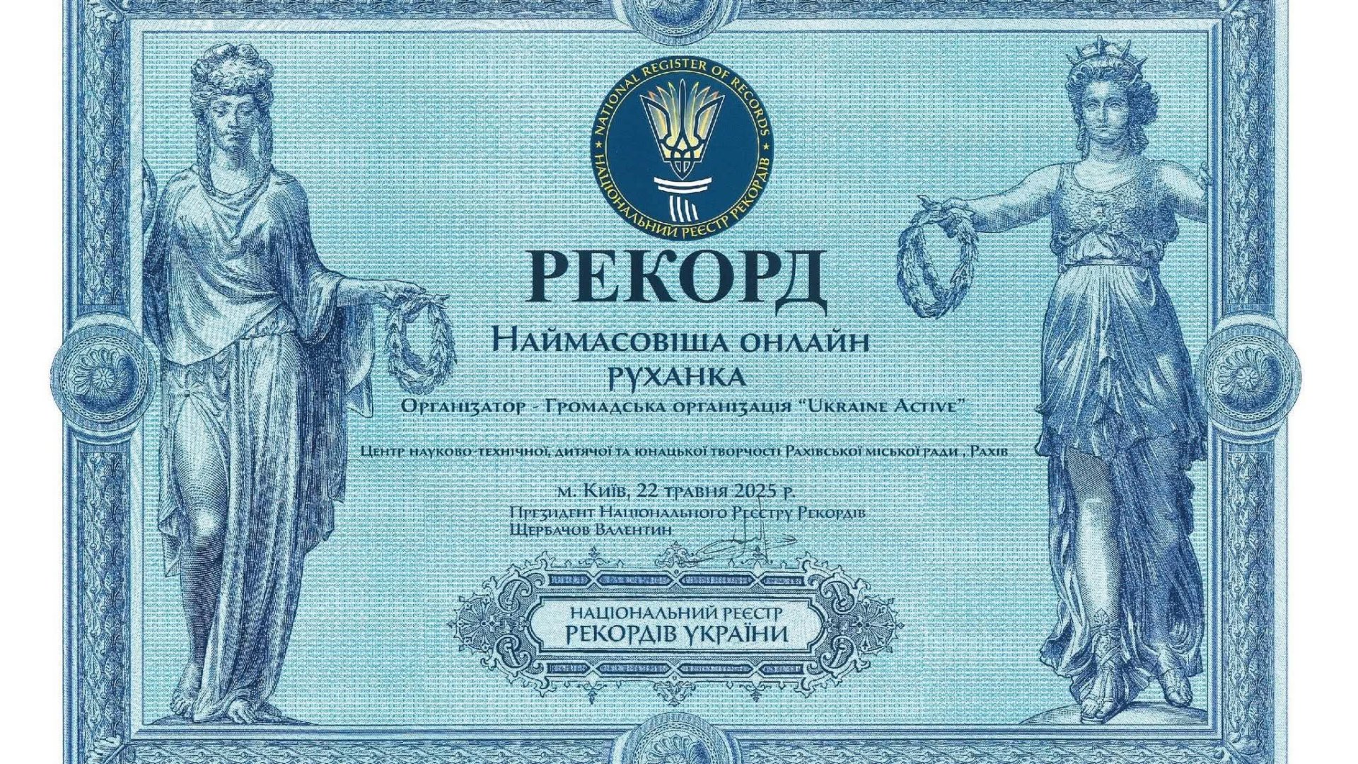 22 травня 2025 року Рахівська громада стала частиною грандіозної події, що увійшла в історію! Центр науково-технічної, дитячої та юнацької творчості Рахівської міської ради, спільно з громадською організацією "Ukraine Active", взяв участь у встановленні рекорду України — "Наймасовіша онлайн-руханка".