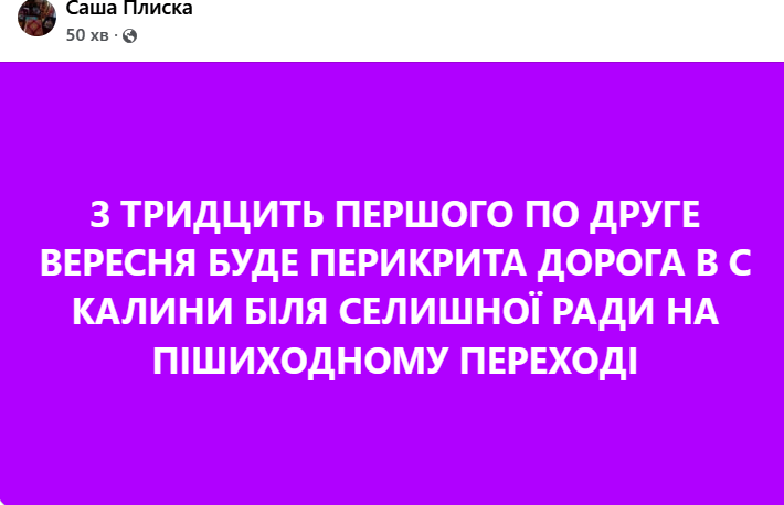 Згідно з повідомленням активістки Саші Плиски в соціальних мережах, з 31 серпня по 2 вересня буде перекрита дорога біля селищної ради на пішохідному переході. Ця акція є протестом проти будівництва ГЕС.