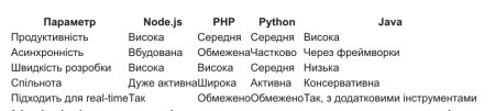 Node.js дозволяє вирішити ці проблеми завдяки подієвій архітектурі, асинхронності та широкій екосистемі.