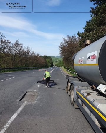 🌧️ Інтенсивний рух важковагового транспорту у поєднанні з різкими перепадами температури та опадами призводить до швидкого зношення покриття. Саме тому роботи з ліквідації аварійних ділянок тут проводяться безперервно.