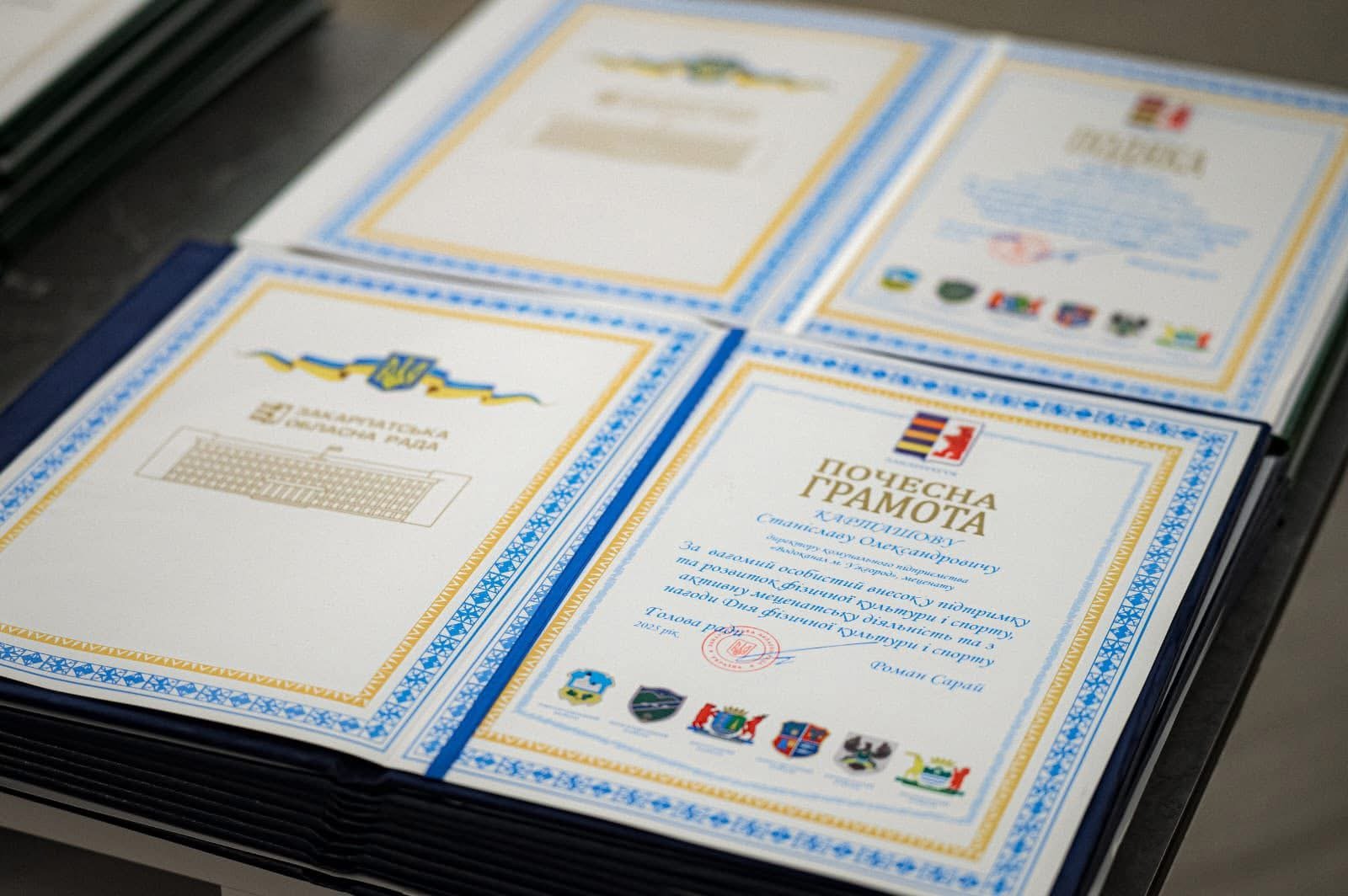 🔹 Крім того, грамотами та подяками від Міністерства молоді та спорту, НОК України, обласної влади та департаменту освіти і науки, молоді та спорту Закарпатської ОВА нагородили 80 працівників сфери фізичної культури і спорту.